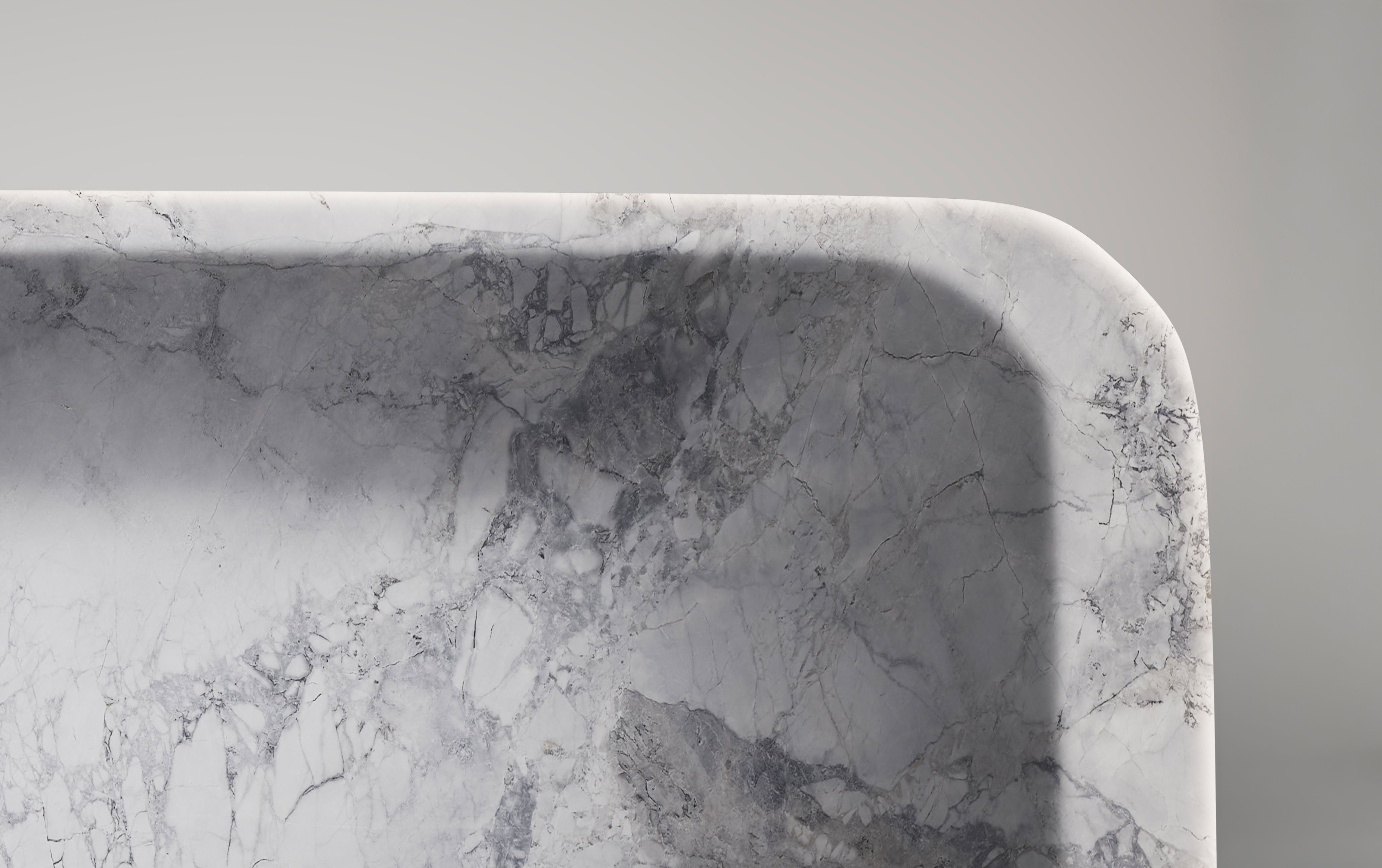 The natural stone, masterfully sculpted from a single block, unveils its deepest essence: vibrant, alive, and intrinsically capable of narrating the passage of time. Each line is the culmination of an aesthetic pursuit that seamlessly unites rigor with sensitivity. Its geometric curves and impeccably polished surfaces beckon connection, encouraging a graceful slowness and an intimate attentiveness.