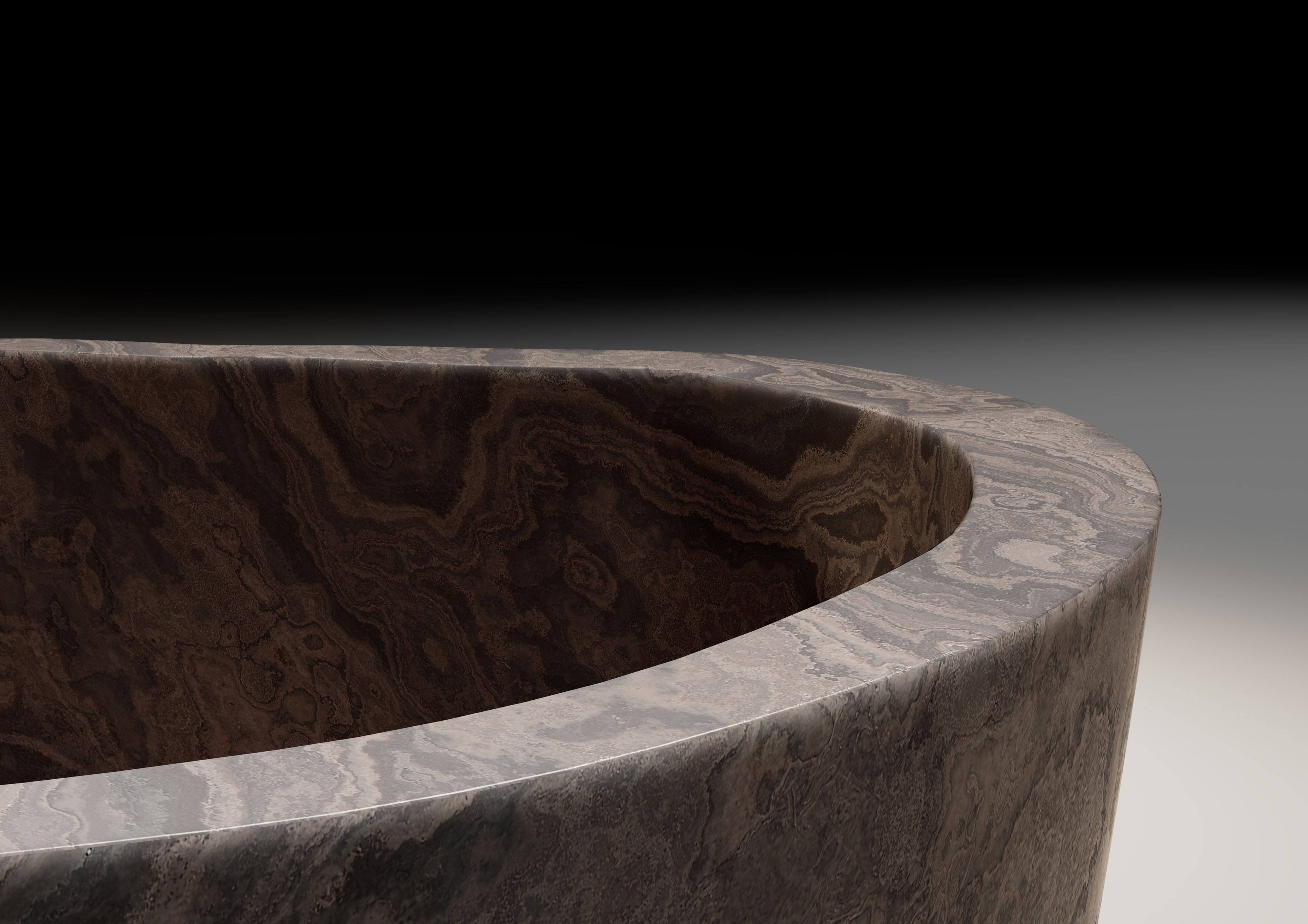 In its apparent simplicity, Venus reveals a refined and unexpected soul. Every detail reflects a thoughtful choice: the natural stone, the finishes, and the hand-polished surface all speak to time-honored craftsmanship. The veining flows like a silent narrative, preserving artistic knowledge expressed through a pure, essential, form.