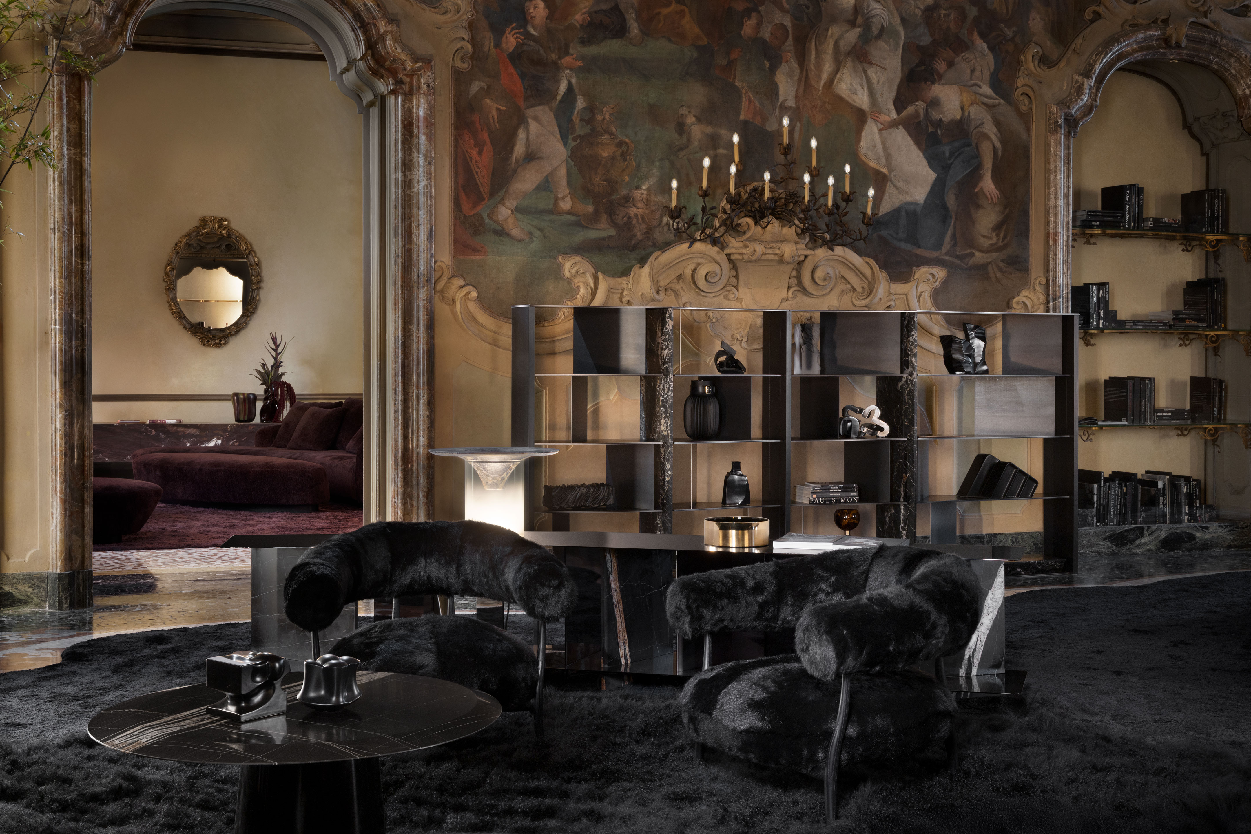 Named after Queen Artemisia — the lady of Halicarnassus and the only woman to lead a Persian fleet in the 5th century BC— Gallizioli's creation asserts itself in the space with the same authority, strong personality and sophisticated appeal, thanks to the choice of matter and design. The silhouette itself evokes her figure, a play of curves and sinuous lines that define each element, both in the structure and in the upholstered parts of the seat and backrest. Like its namesake, the armchair too creates a tale of timeless beauty, letting oneself be cradled between memories and the present.