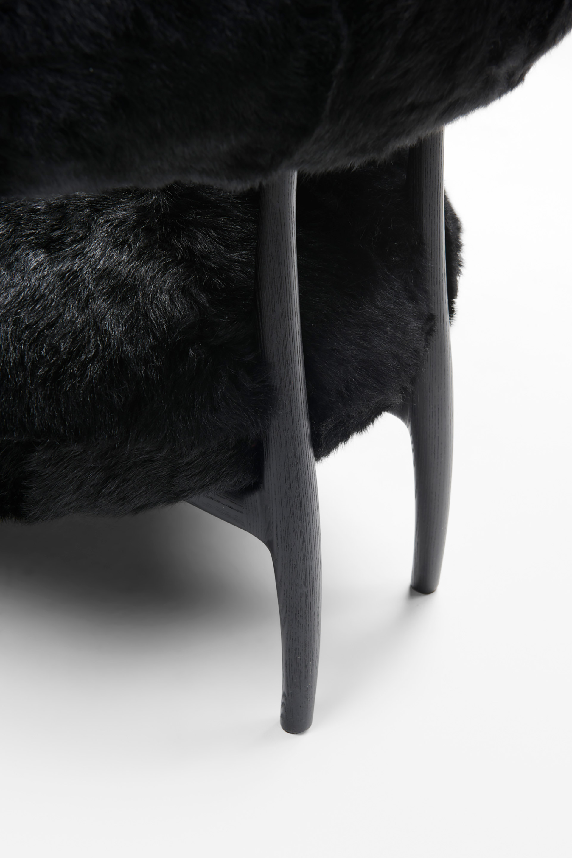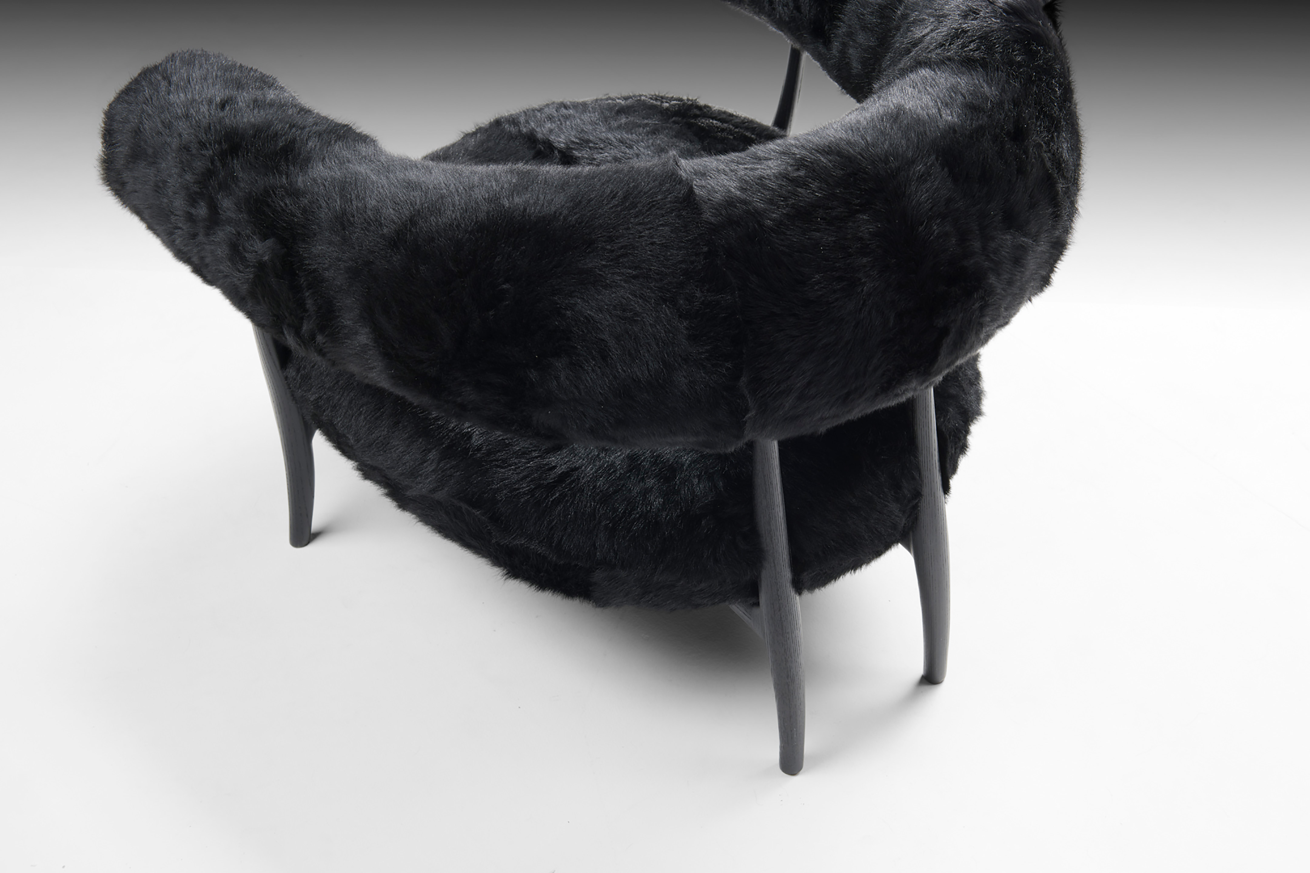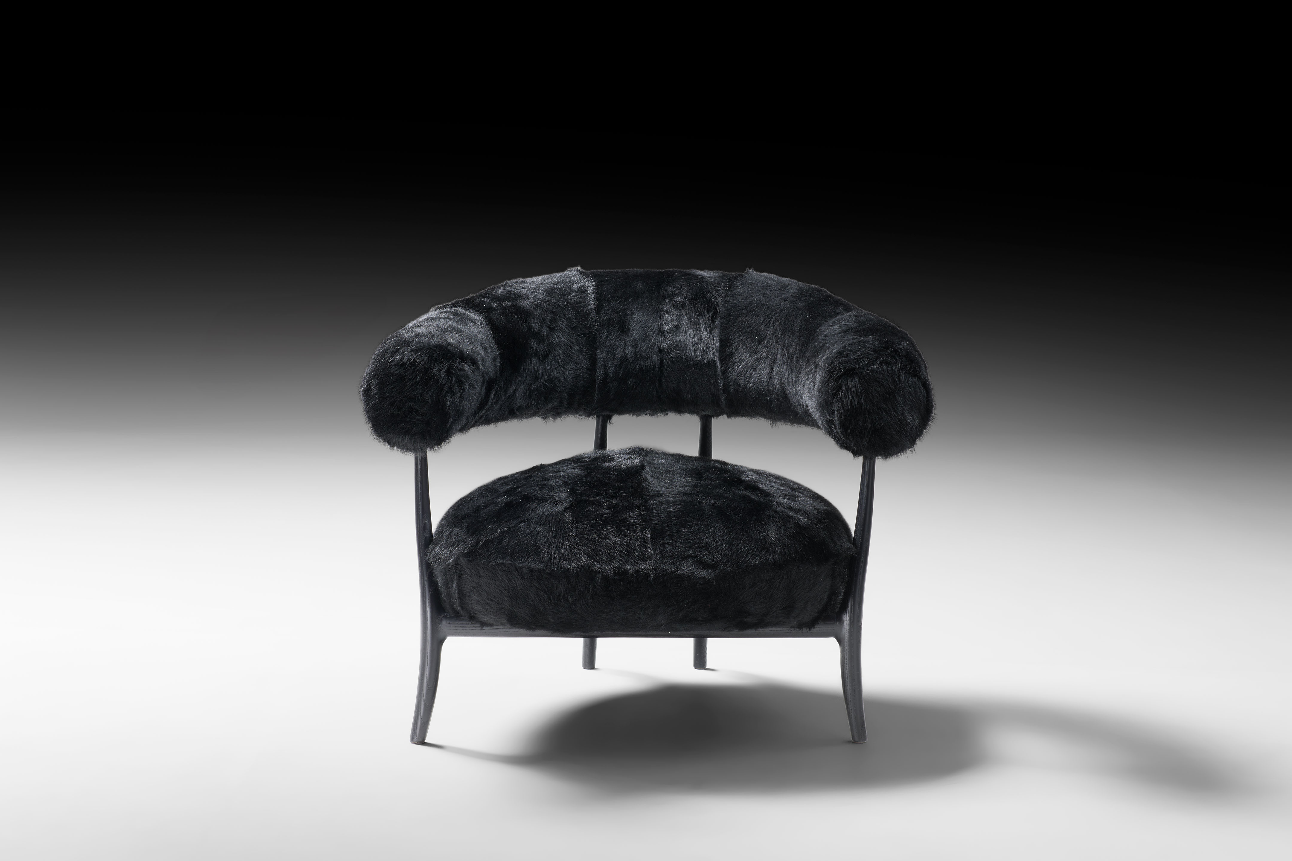 The soft upholstery enhances the roundness of the seat and the backrest especially that seamlessly extends into the armrest, creating a welcoming gesture.