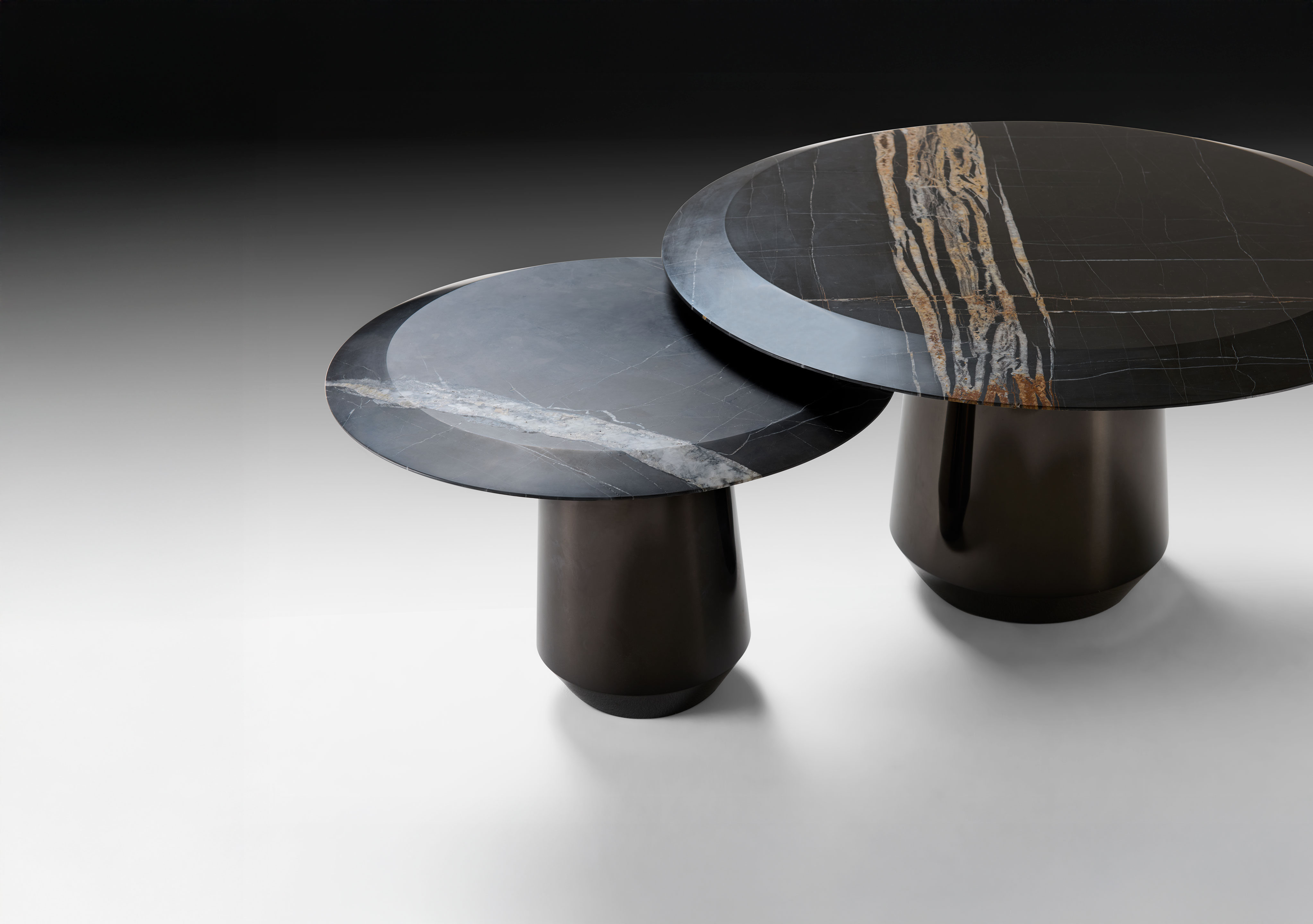 A table seemingly in motion, a balance of shapes defying staticity. A design by Migliore+Servetto, the Coronae coffee table series, available in three sizes, portrays a refined and essential design where every detail is crafted to enhance the essence of the matter.