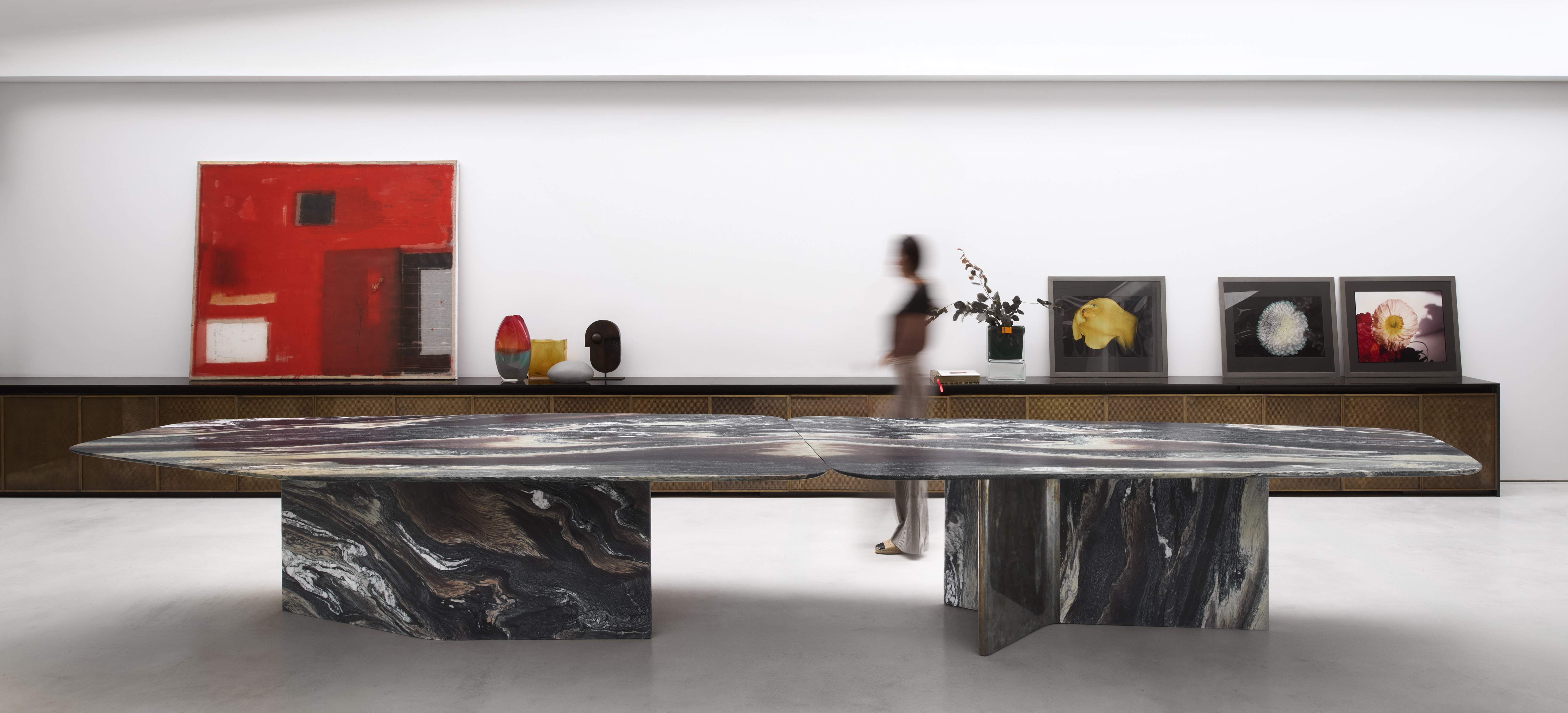 These two realms do not compete; they converge in measured harmony, each elevating the other. The table’s ethereal lightness, captured in the near-invisible edges of the top, speaks to this union — a subtle evolution made visible, where weight dissolves into air and form becomes feeling.
