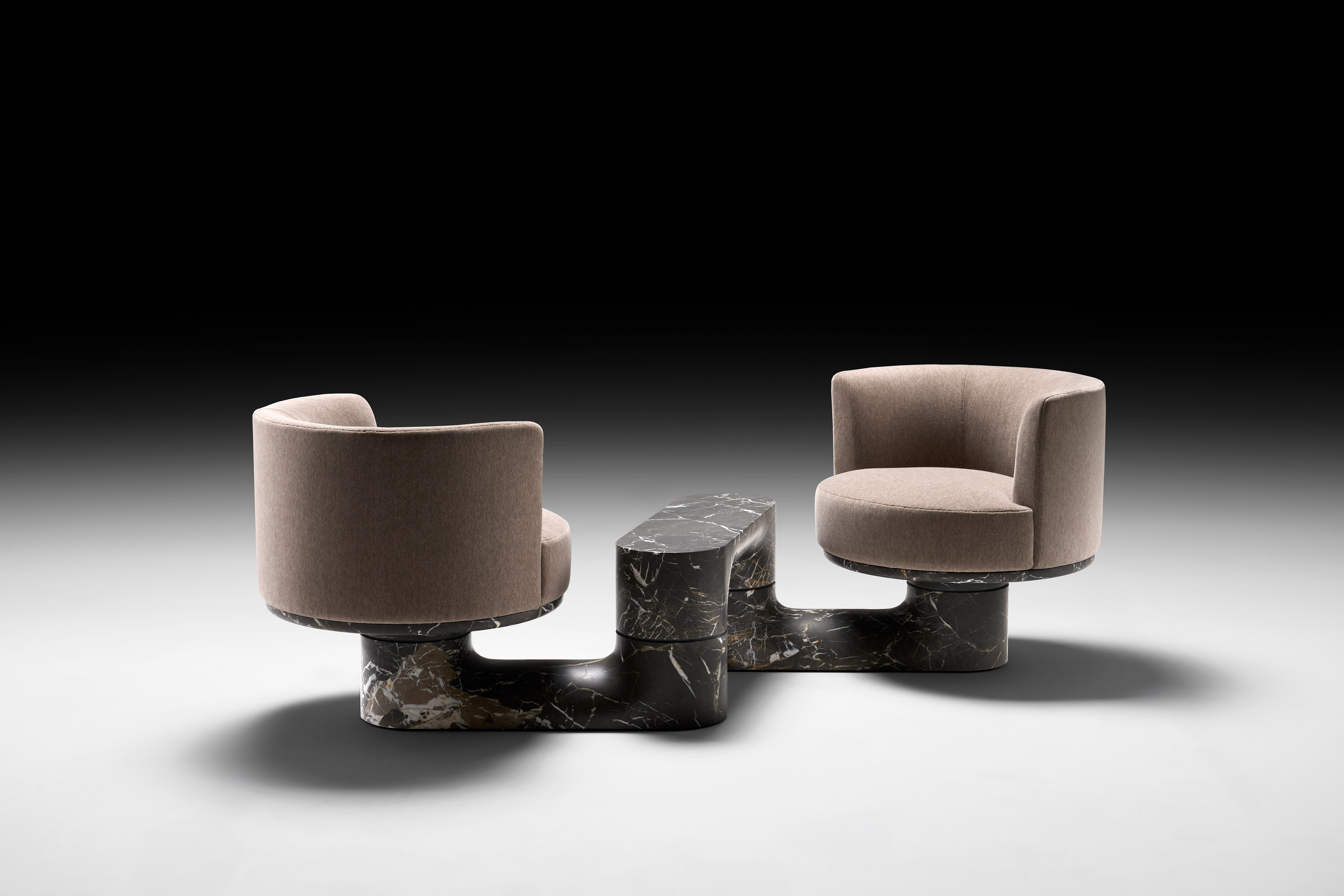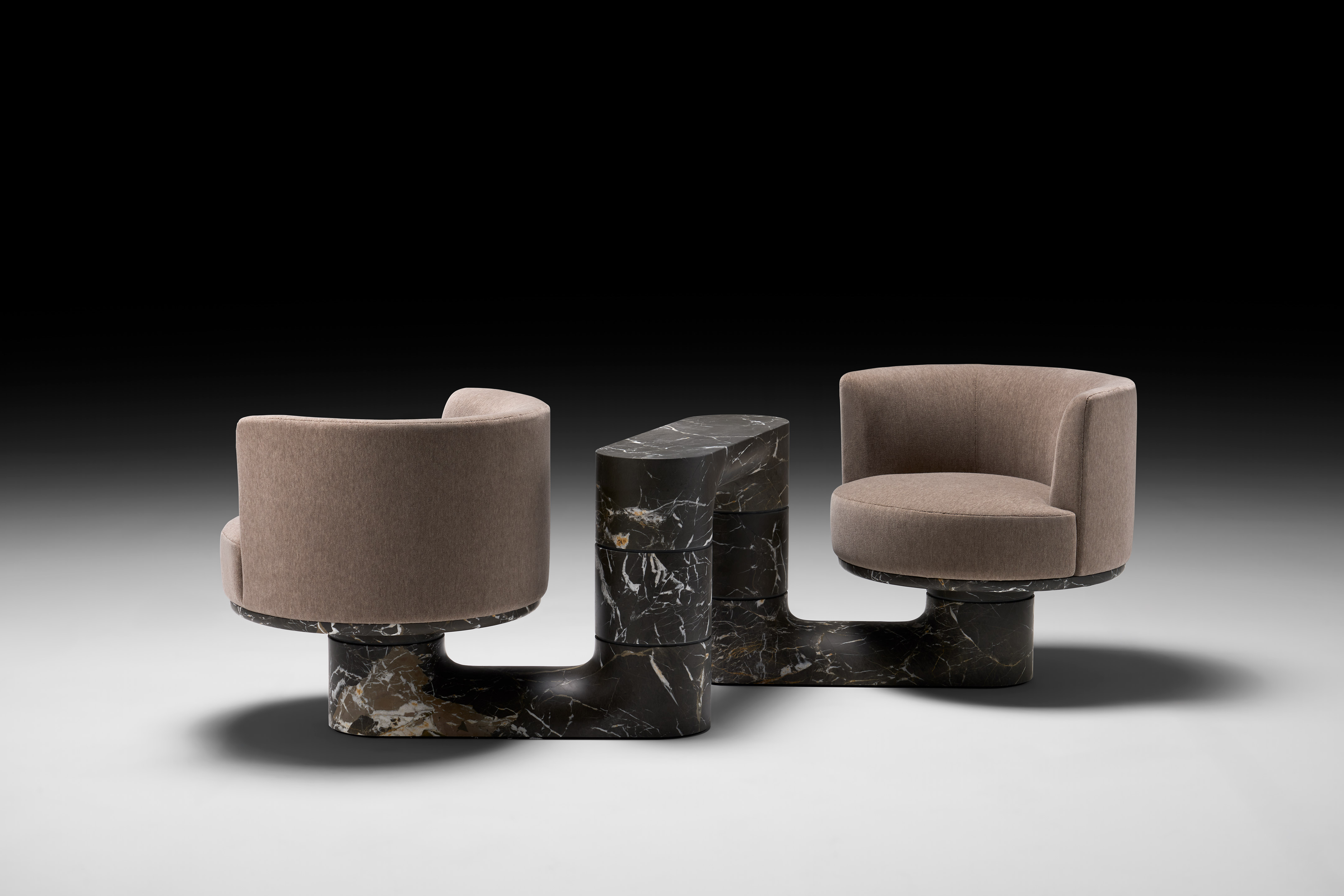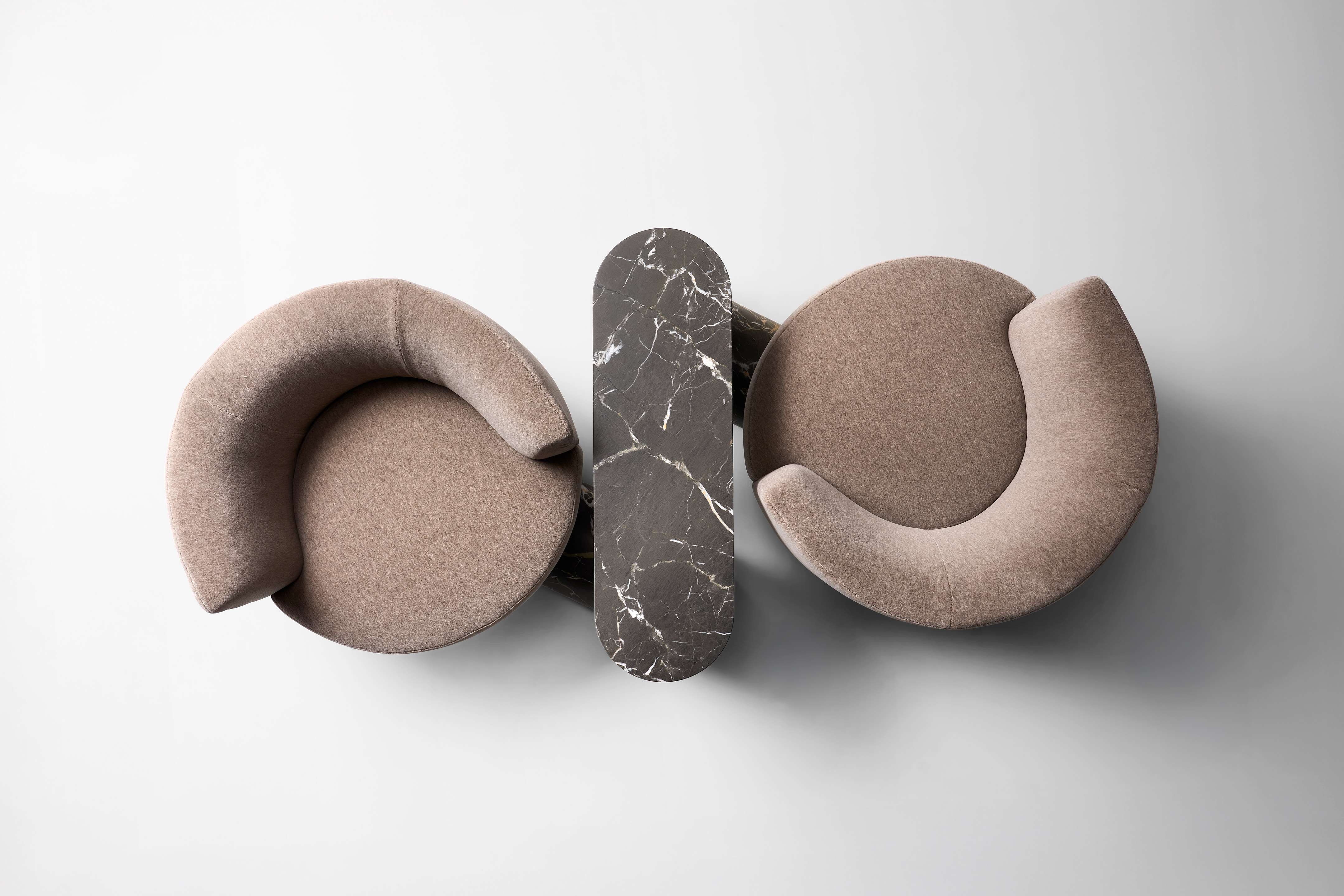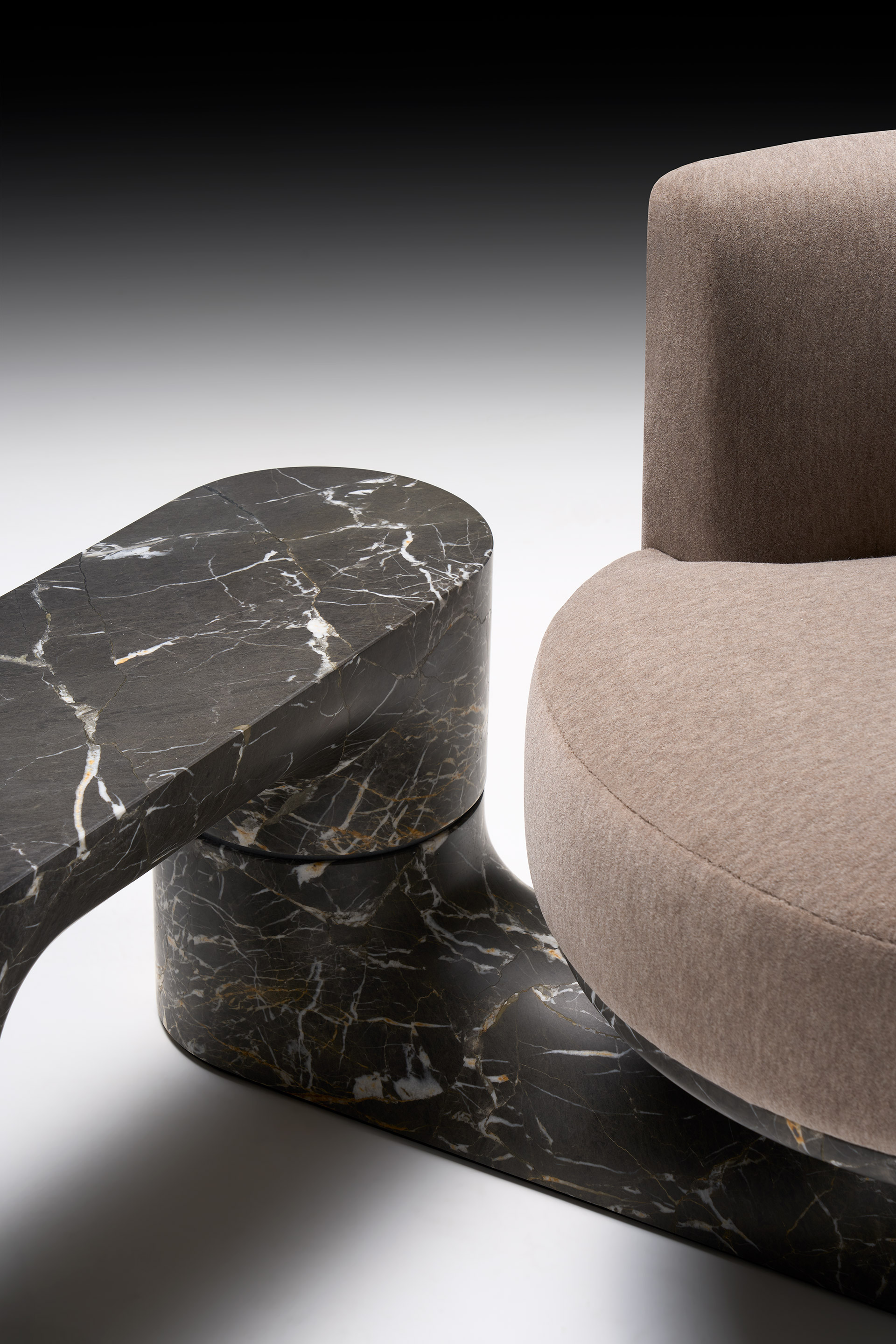 atelier oï redefines the concept of natural stone, going beyond its static and monolithic appearance. They break it down, shape it and mold it, making it fluid and malleable, thus becoming a living material, capable of movement and transformation. Micelio is born from this vision; a forever evolving collection that now also includes seating in addition to its coffee tables.