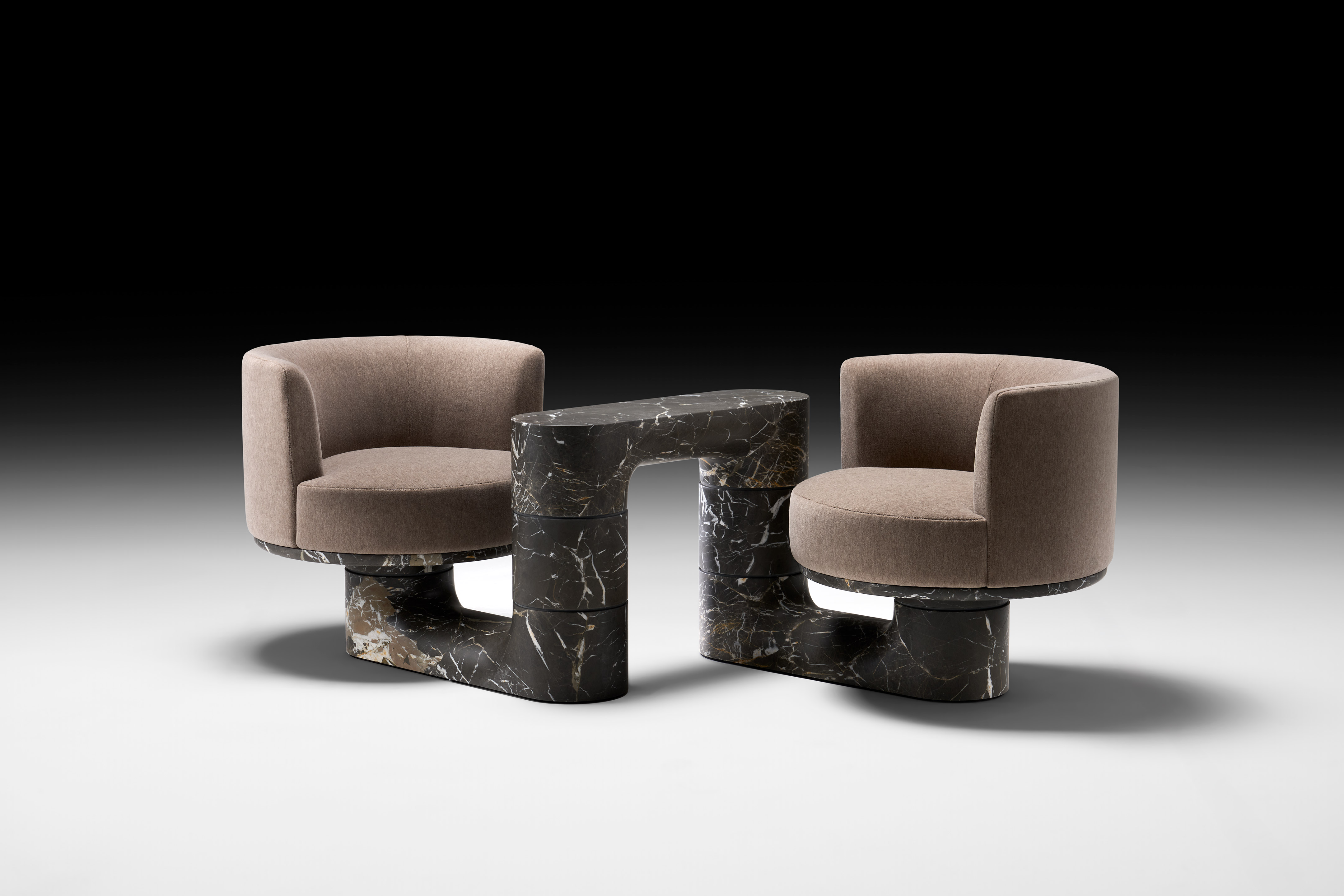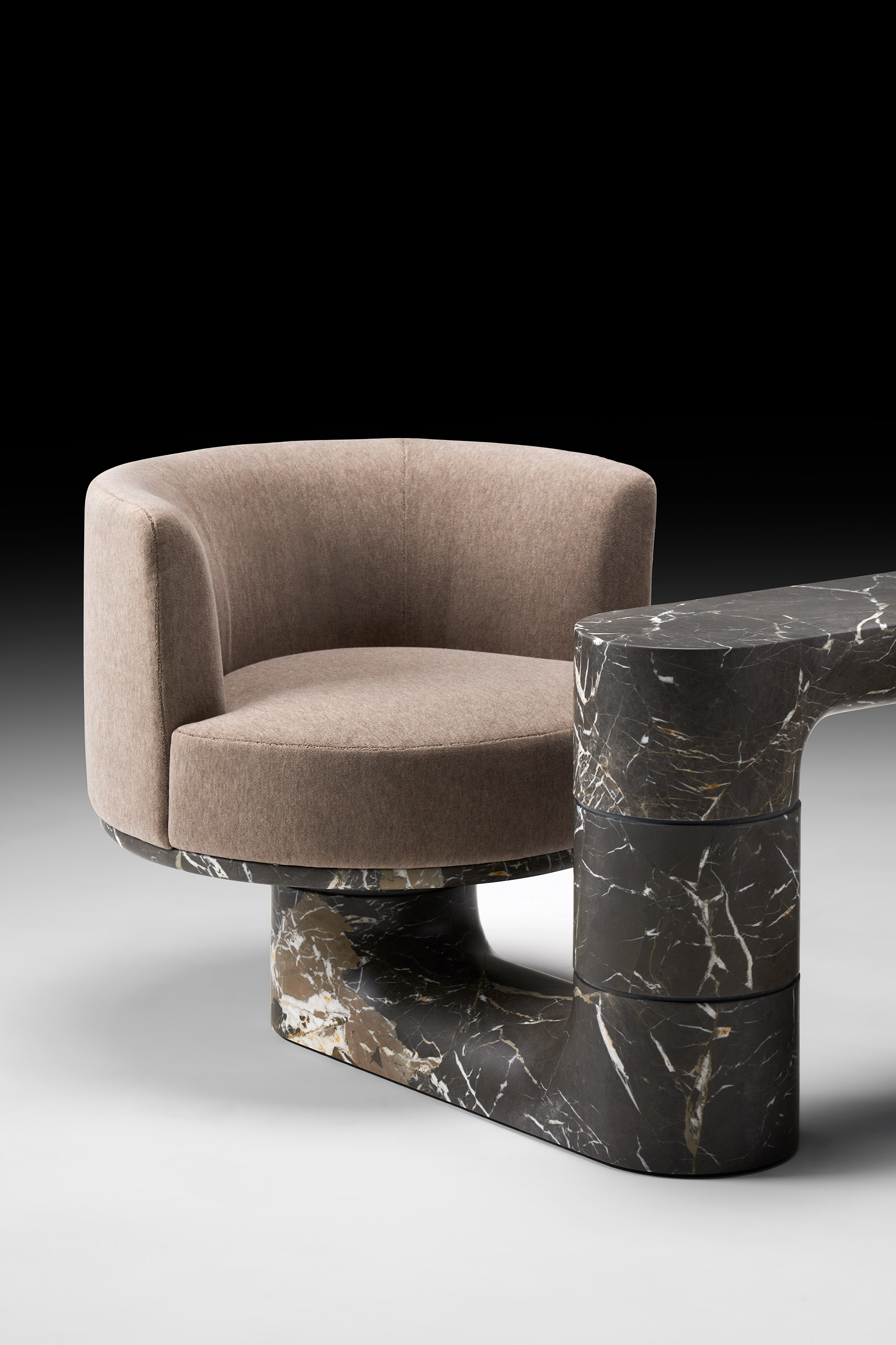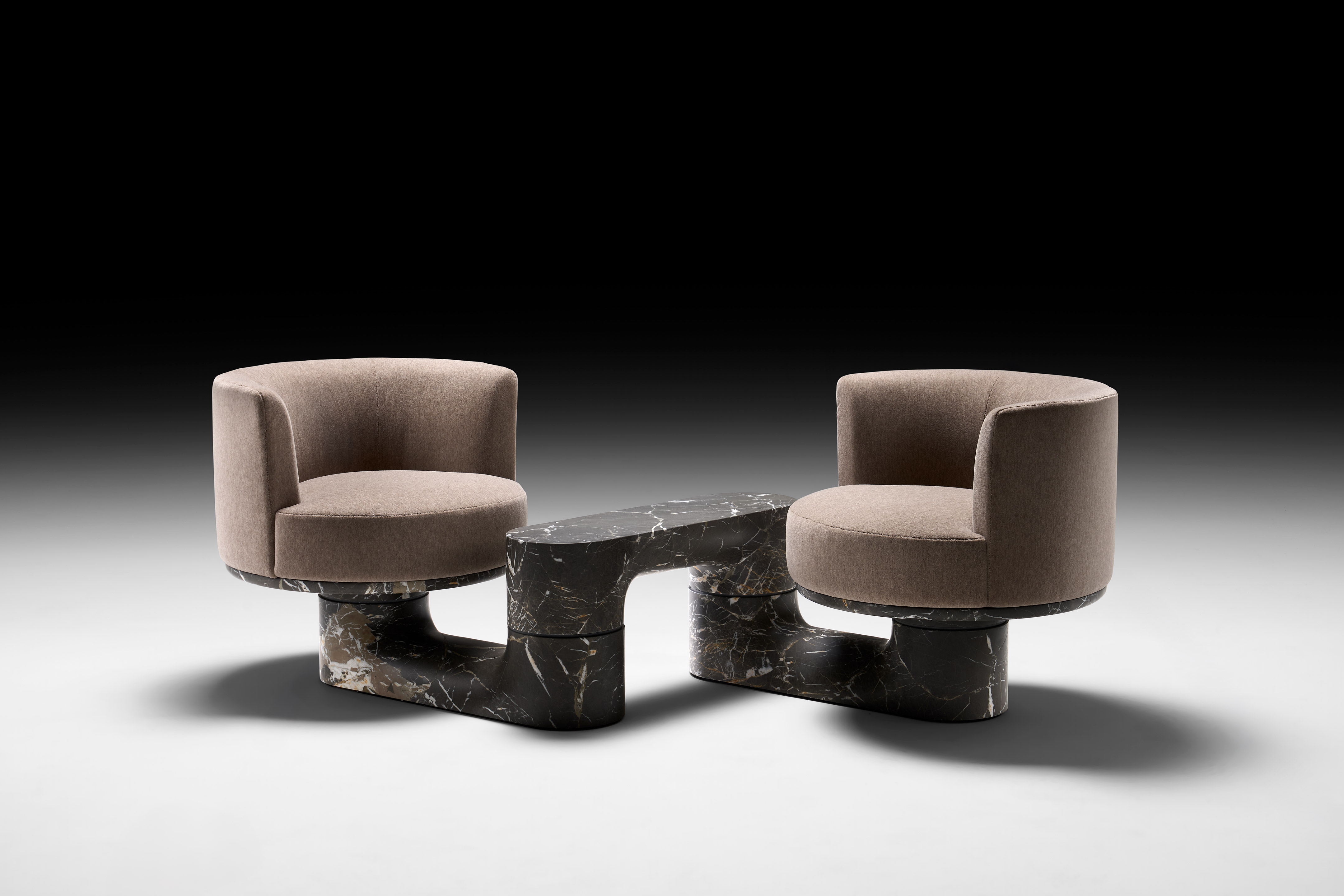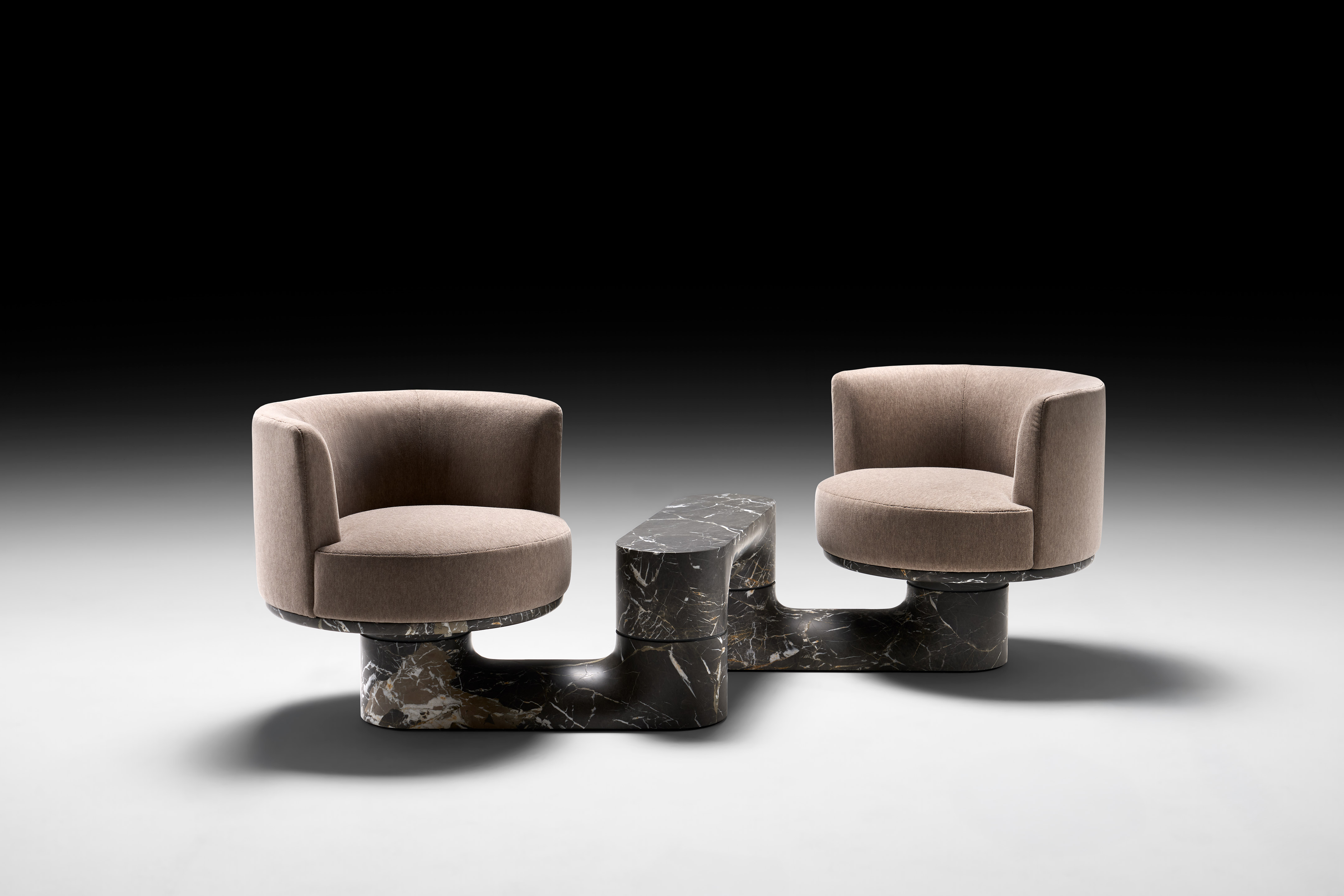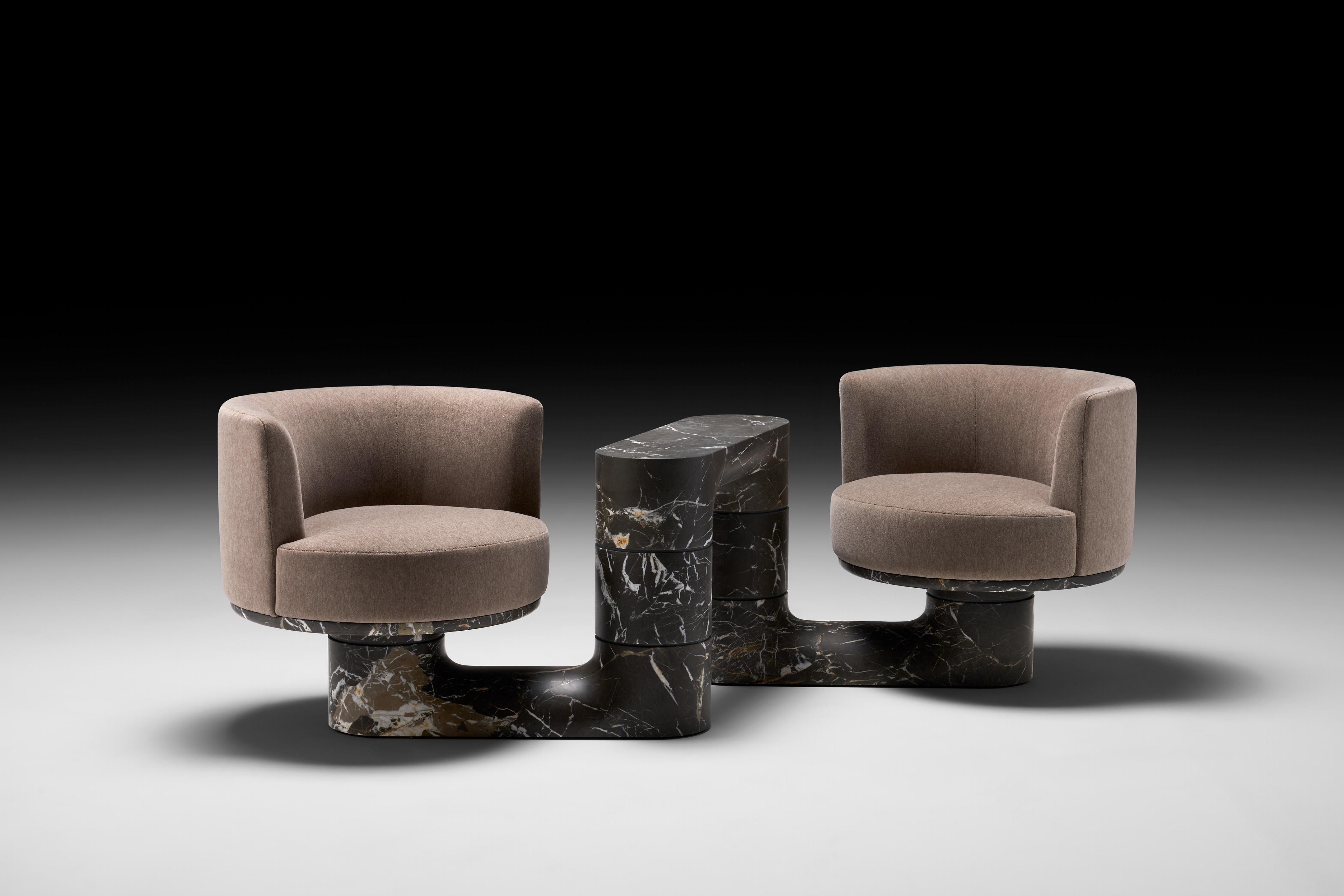 atelier oï redefines the concept of natural stone, going beyond its static and monolithic appearance. They break it down, shape it and mold it, making it fluid and malleable, thus becoming a living material, capable of movement and transformation. Micelio is born from this vision; a forever evolving collection that now also includes seating in addition to its coffee tables.