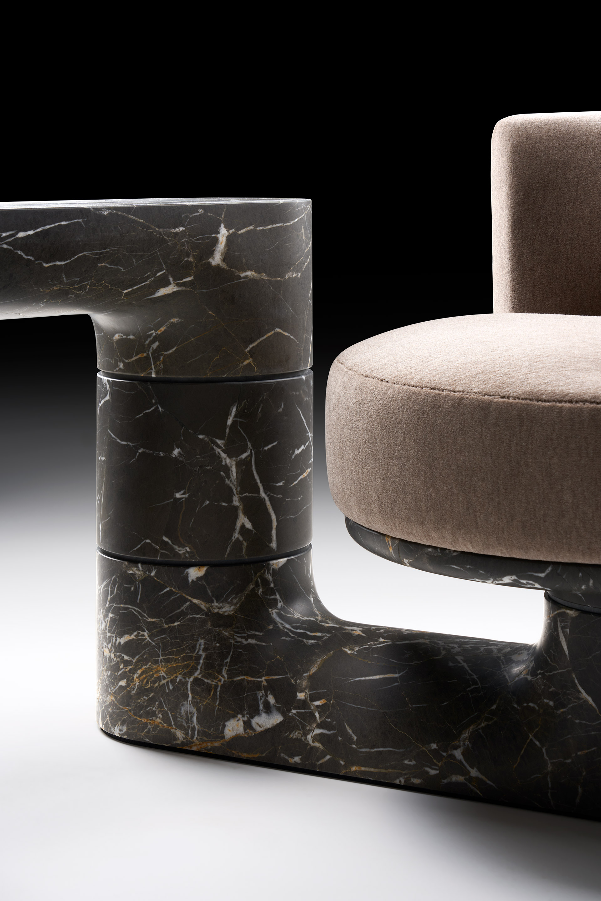 The studio draws inspiration from the invisible nature of mycelial networks: the connection between elements, the flow of forms and the possibility of infinite configurations. Likewise, each element in this marble collection seems to be part of an expanding organism, ready to reshape itself and adapt.