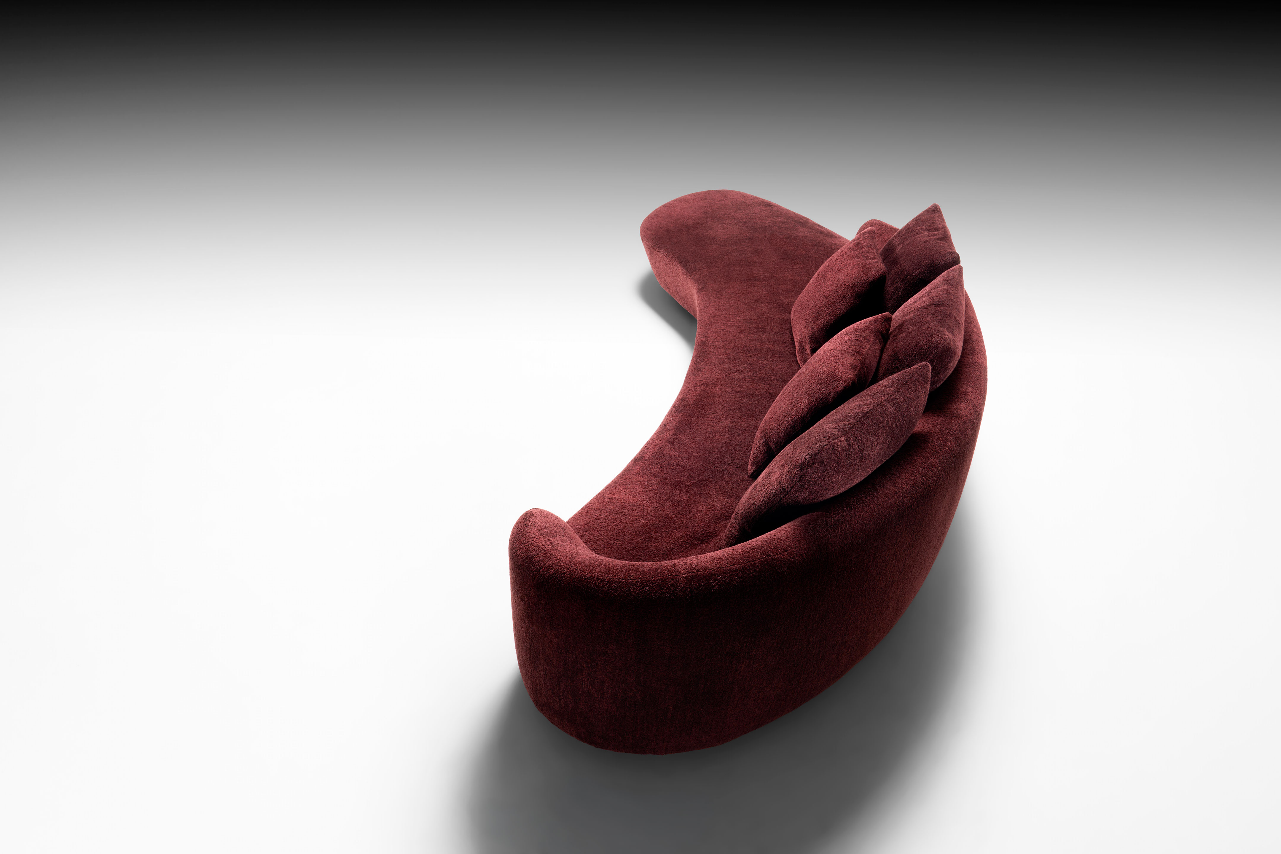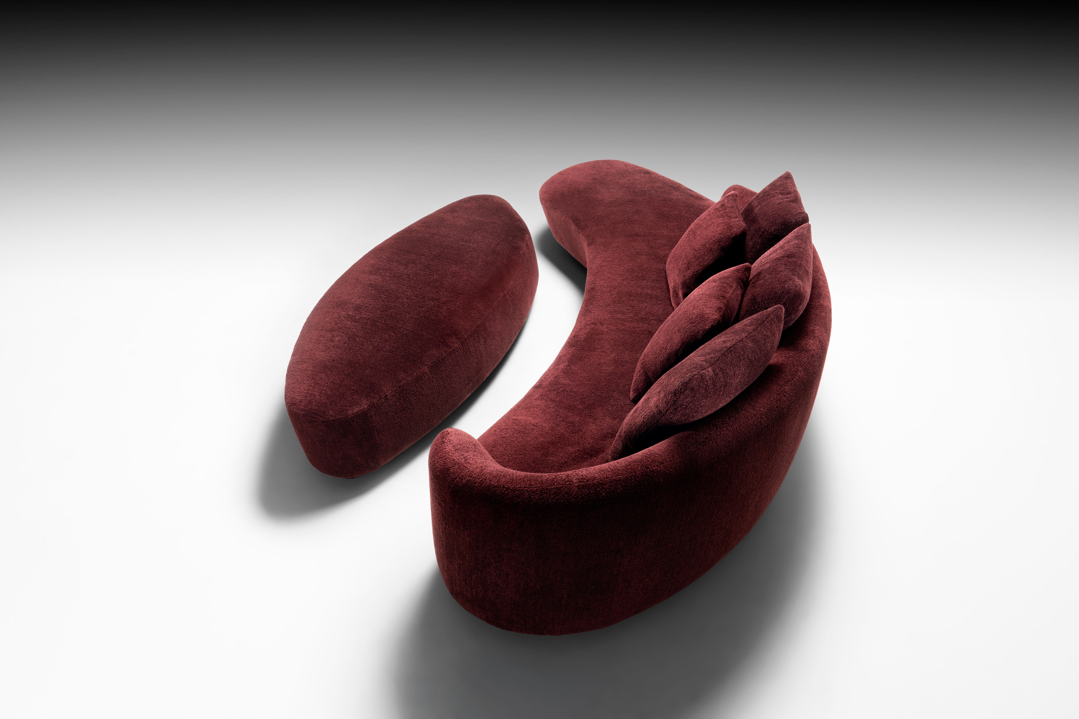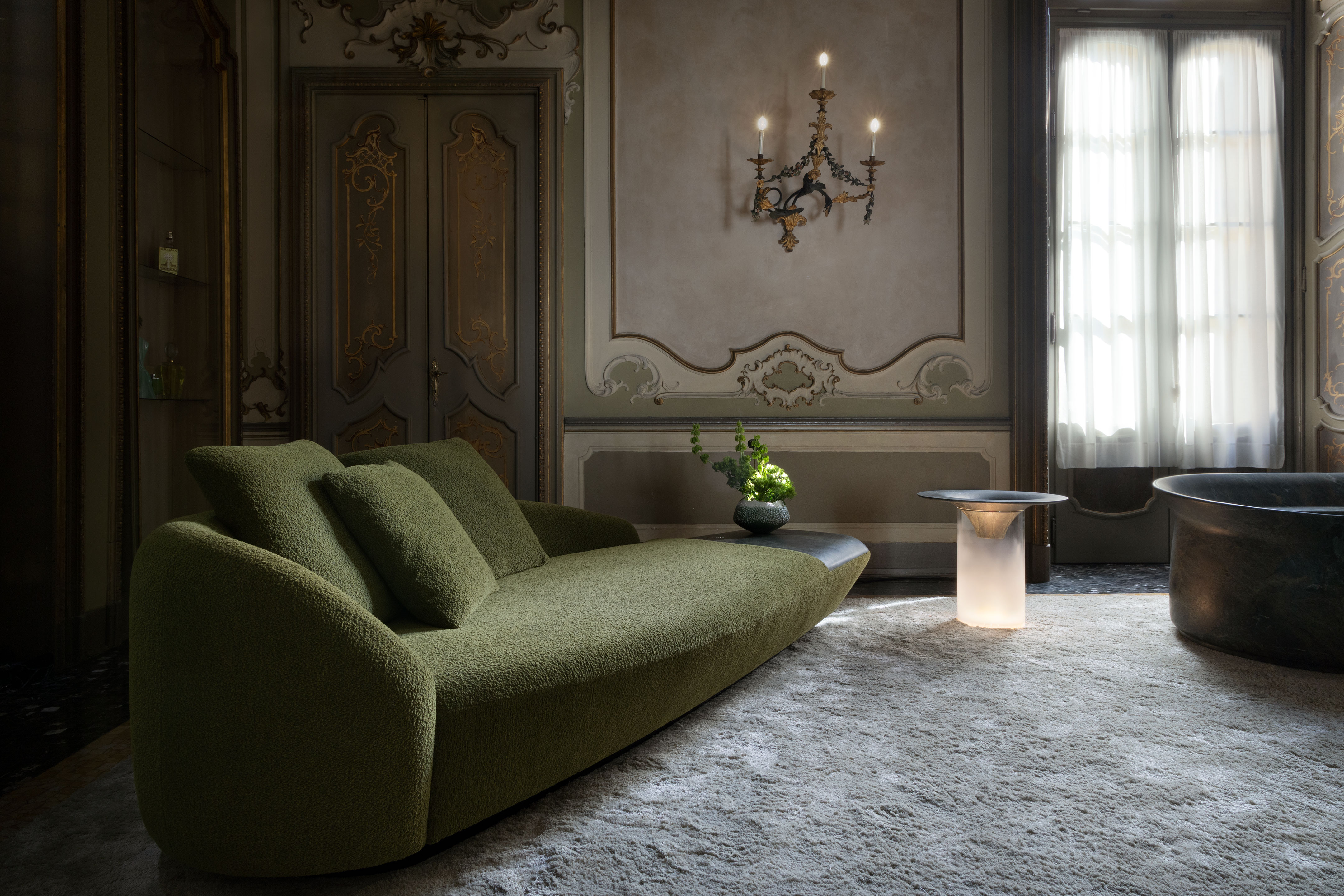 An island of comfort. A refuge to surrender oneself, an invitation to dream and contemplate. Sao Miguel reinterprets the sofa as a regenerating, protected and immersive place. Its asymmetric curves shape fluid and natural domestic landscapes, evoking the feeling of a private island where balance and well-being are restored.
