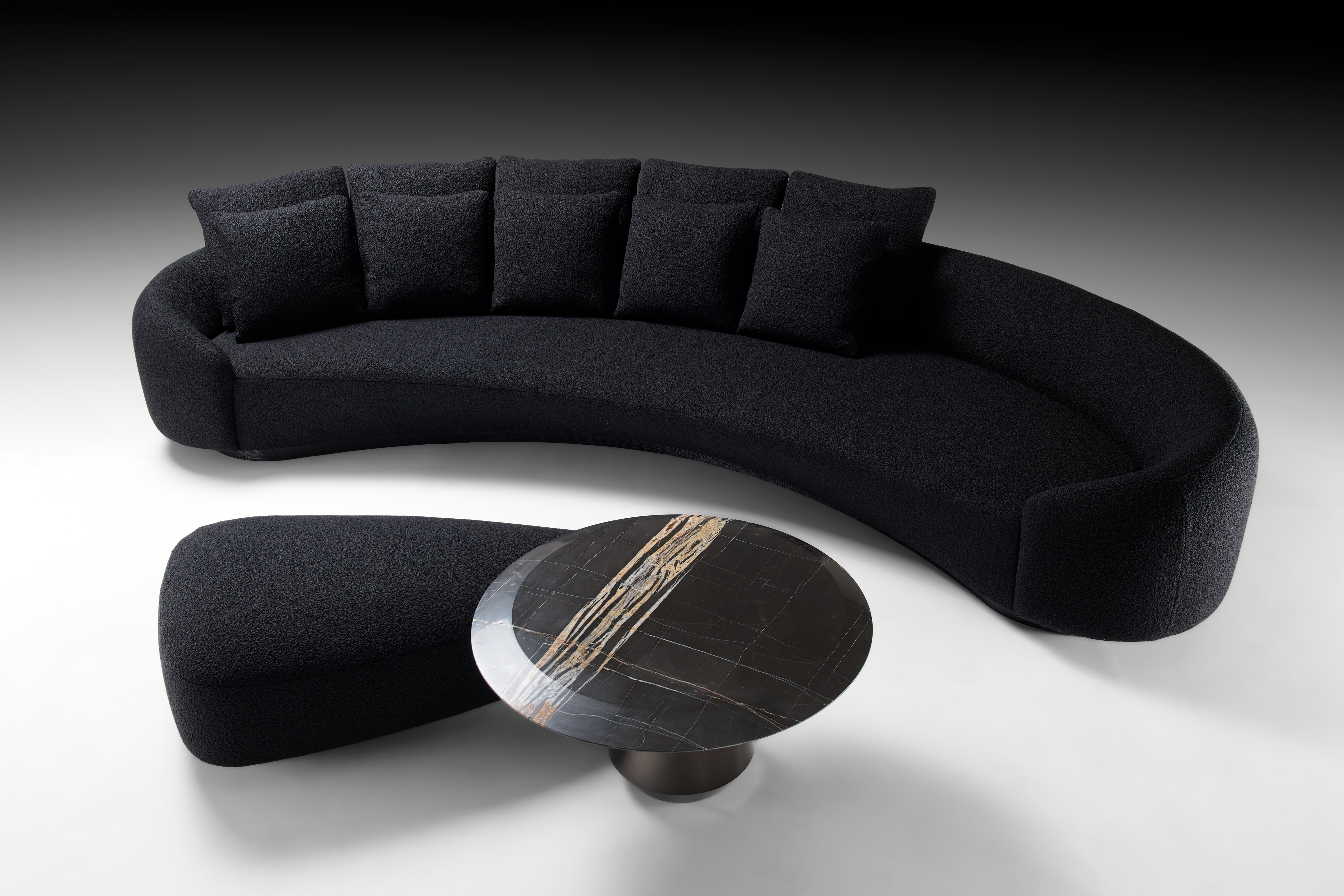 A source of inspiration from which Stefano Gallizioli’s vision was born for this project that translates the island’s almost circular shape into a soft and enveloping design. The sinuous forms of the collection, combined with the tilted profiles of the peninsula, recall the perpetual motion of the natural elements: water, wind, rock.